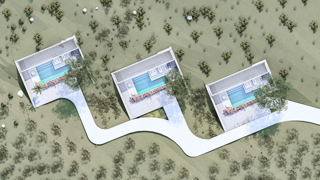 • Έξι ανεξάρτητες βίλες με ιδιωτικές πισίνες, μεγάλες βεράντες και εσωτερικούς χώρους που προσφέρουν ανεμπόδιστη θέα στη φύση.